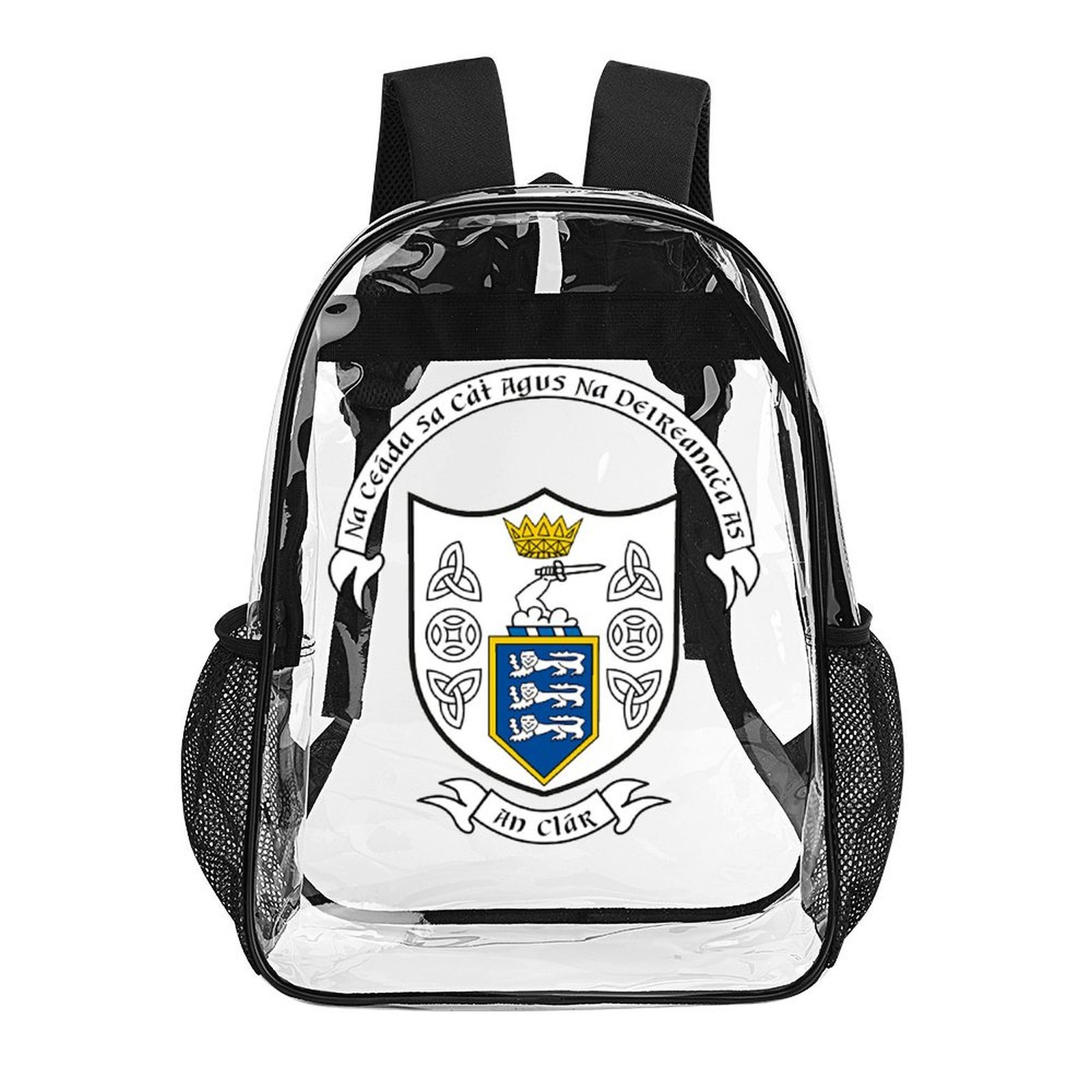 Show your pride for Clare GAA with this stylish and durable backpack, perfect for both casual wear and supporting your county team. Made from high-quality, water-resistant PVC material, this clear backpack features the iconic Clare crest, adorned with the county’s traditional symbols that represent the proud history and heritage of Clare. With its spacious interior that fits laptops up to 16 inches and practical side pockets, this backpack is both functional and fashionable.