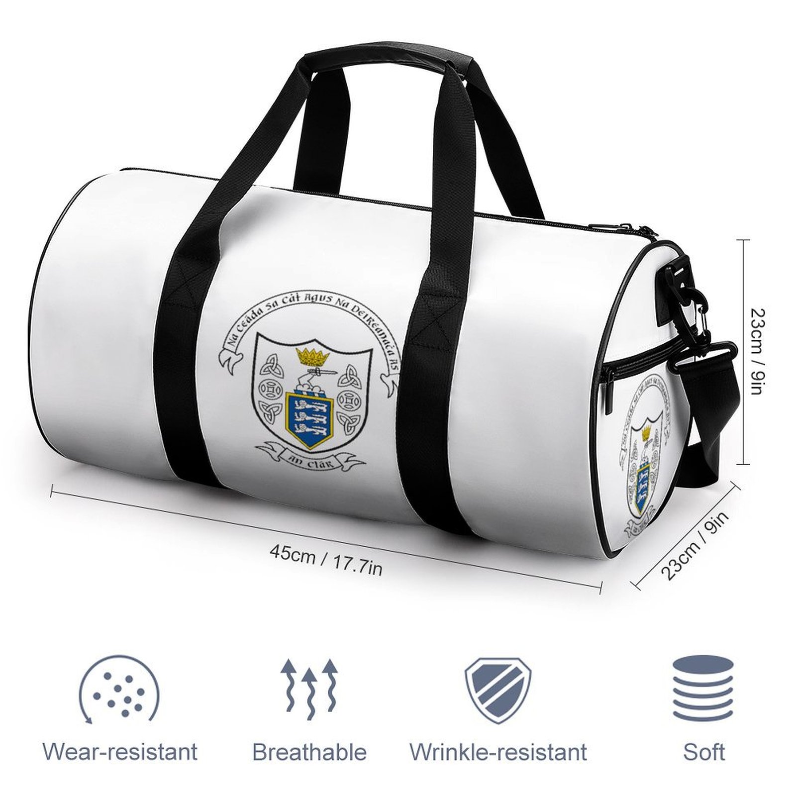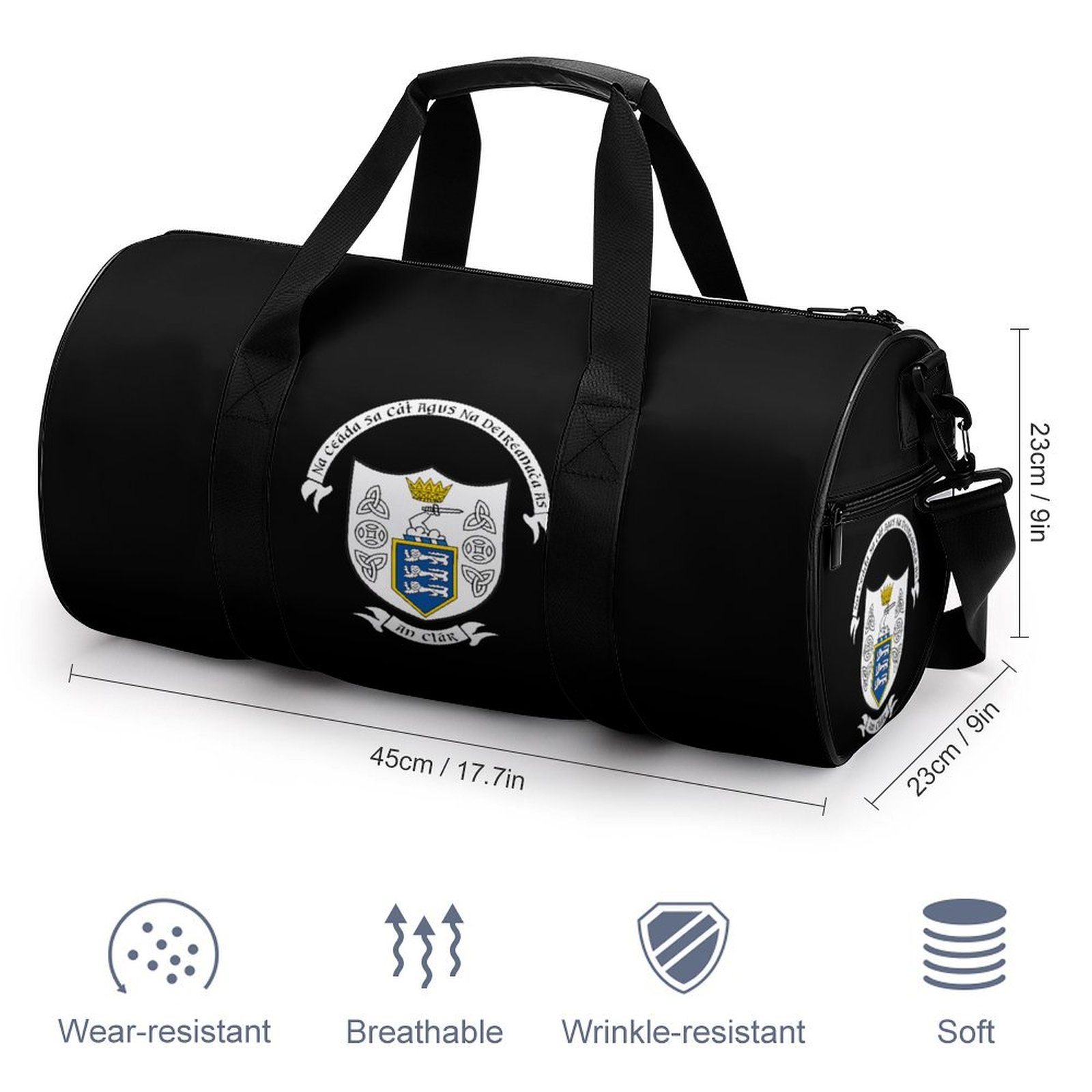 Show your pride for Clare GAA with this stylish and durable sports bag, perfect for both casual use and supporting your county team. Made from high-quality, wear-resistant material, this bag features the official Clare crest, proudly displaying symbols that represent the county’s deep heritage, strength, and sporting tradition. With a spacious interior, this bag offers ample room for your gear, combining function, style, and county pride.