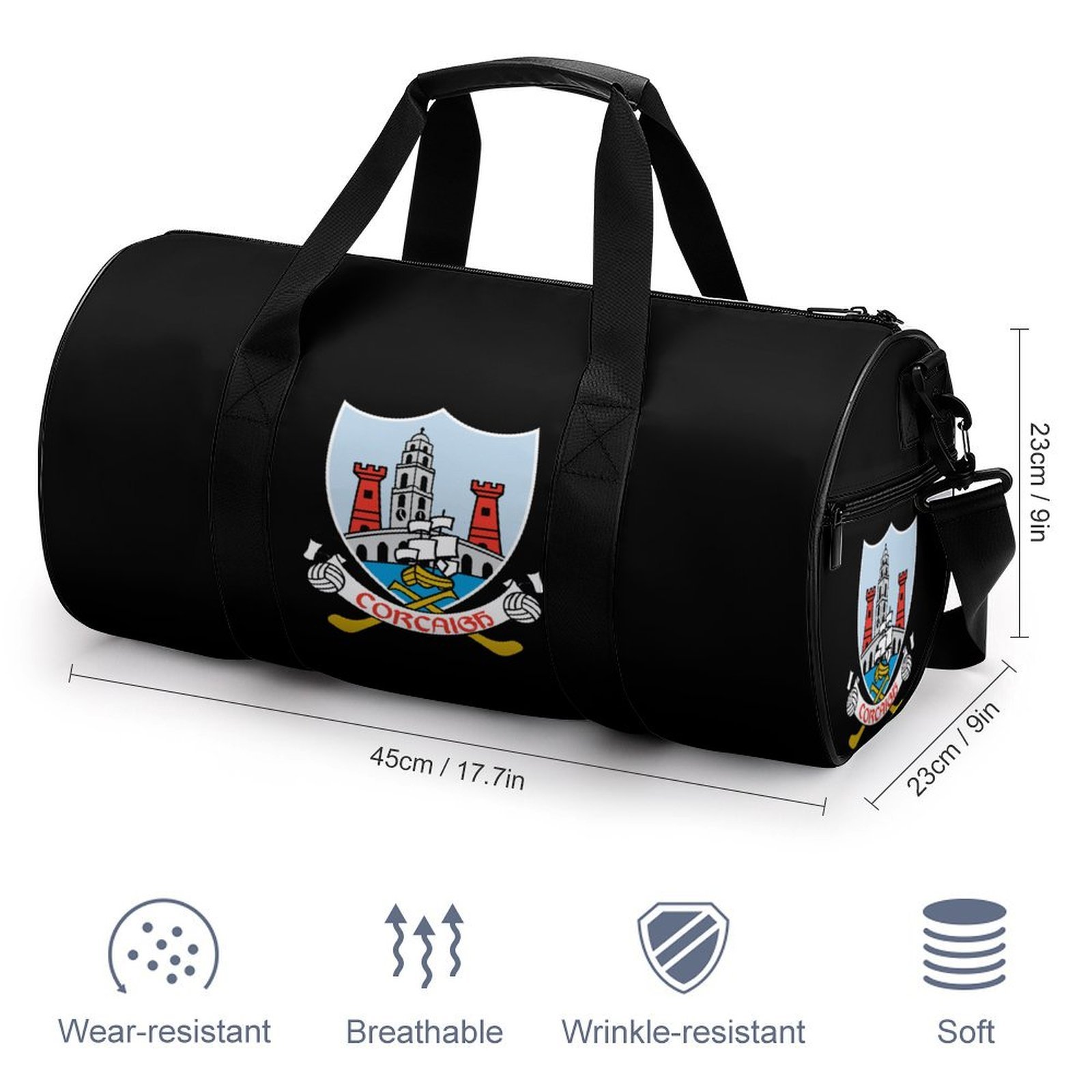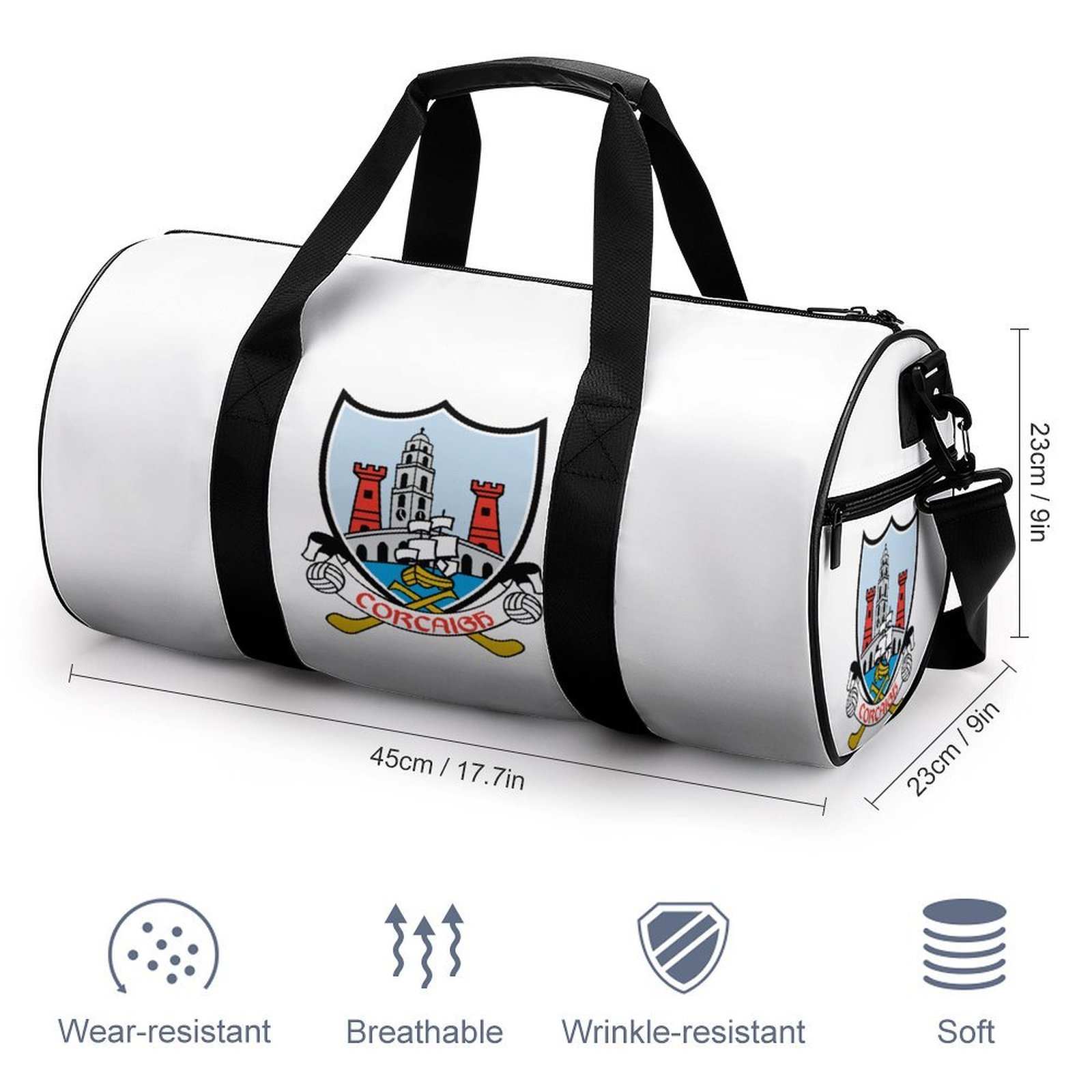 Show your pride for Cork GAA with this stylish and durable sports bag, perfect for both casual use and supporting your county team. Made from premium, wear-resistant material, this bag features the official Cork crest, displaying the county’s iconic towers and ship—symbols of strength, pride, and the Rebel County’s rich Gaelic heritage. With a spacious interior, this bag offers plenty of room for your sports gear, making it both functional and stylish for everyday use.