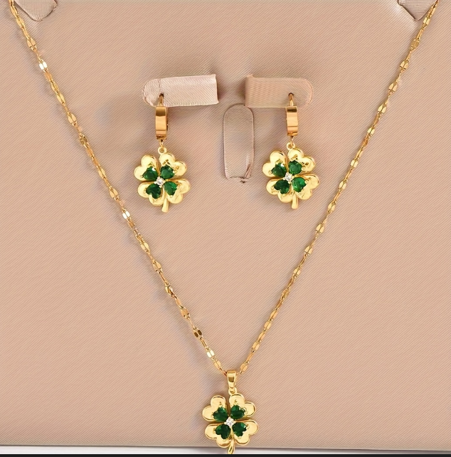 Celebrate the timeless charm of the Emerald Isle with this premium Cubic Zirconia Lucky Clover Necklace & Earrings Set. Blending sophisticated elegance with iconic Irish symbolism, this coordinated 3-piece jewelry set is perfect for match days, formal gatherings, festive celebrations, or gifting to a loved one. Each piece is crafted from high-quality, wear-resistant materials and adorned with precision-cut cubic zirconia stones that capture the light beautifully. Featuring the traditional four-leaf clover—a symbol of faith, hope, love, and good fortune—this set represents the rich cultural heritage and lucky spirit synonymous with hubirish.com.