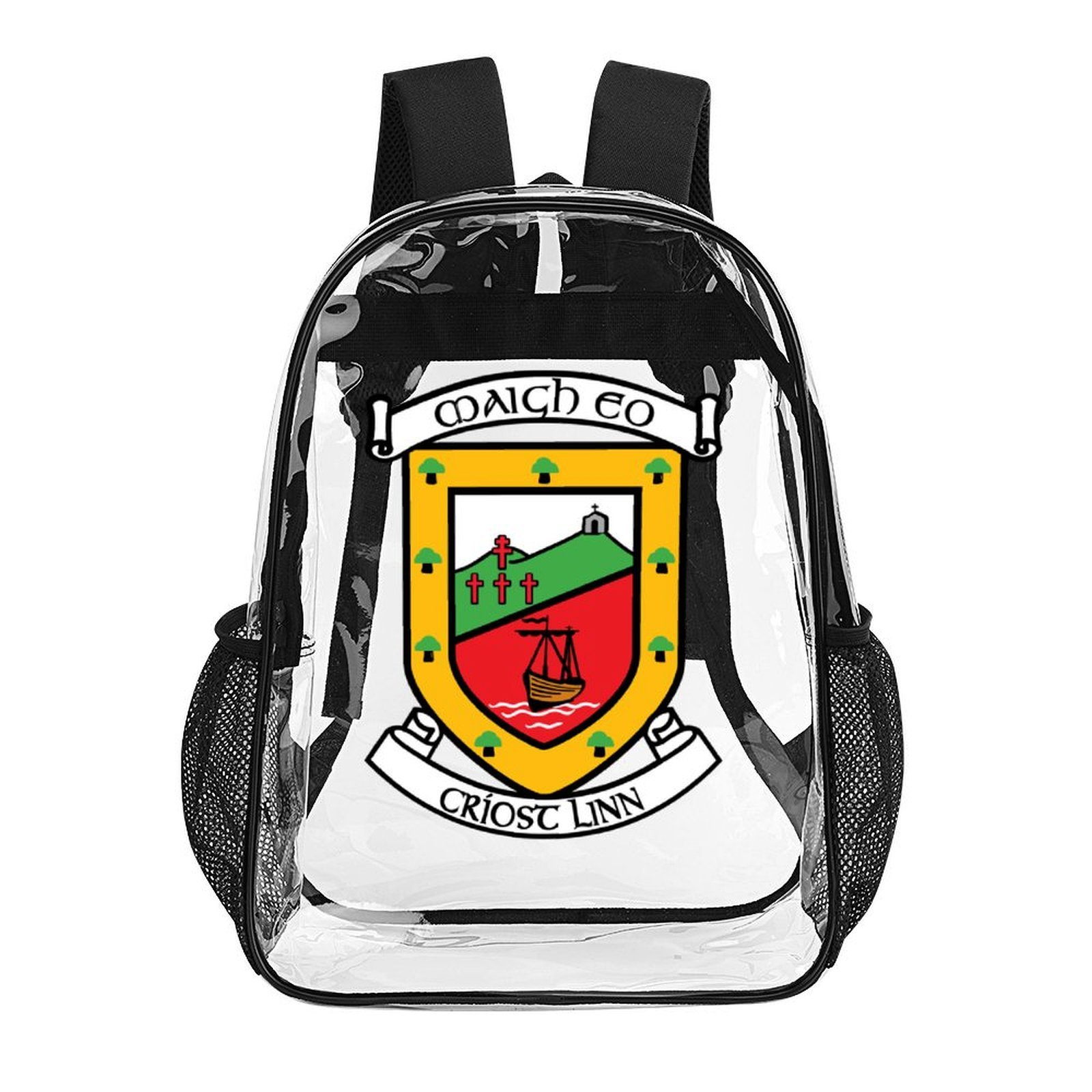 Show your pride for Mayo GAA with this stylish and durable clear backpack, perfect for both casual wear and supporting your county team. Made from high-quality, water-resistant PVC material, this clear backpack features the iconic Mayo crest, with symbols that represent the proud history and heritage of Mayo. With its spacious interior that fits laptops up to 16 inches and practical side pockets, this backpack is both functional and fashionable.
