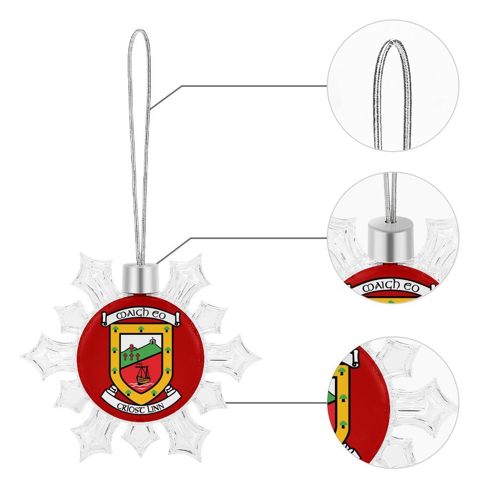 Celebrate your Mayo spirit with our Mayo GAA Irish Christmas Snowflake Ornament. This festive decoration proudly displays the official Mayo GAA crest, beautifully set within a sparkling crystal-style snowflake frame. A unique way to showcase your county pride, itβs a standout addition to any Christmas tree and a meaningful keepsake for Mayo supporters at home or abroad.